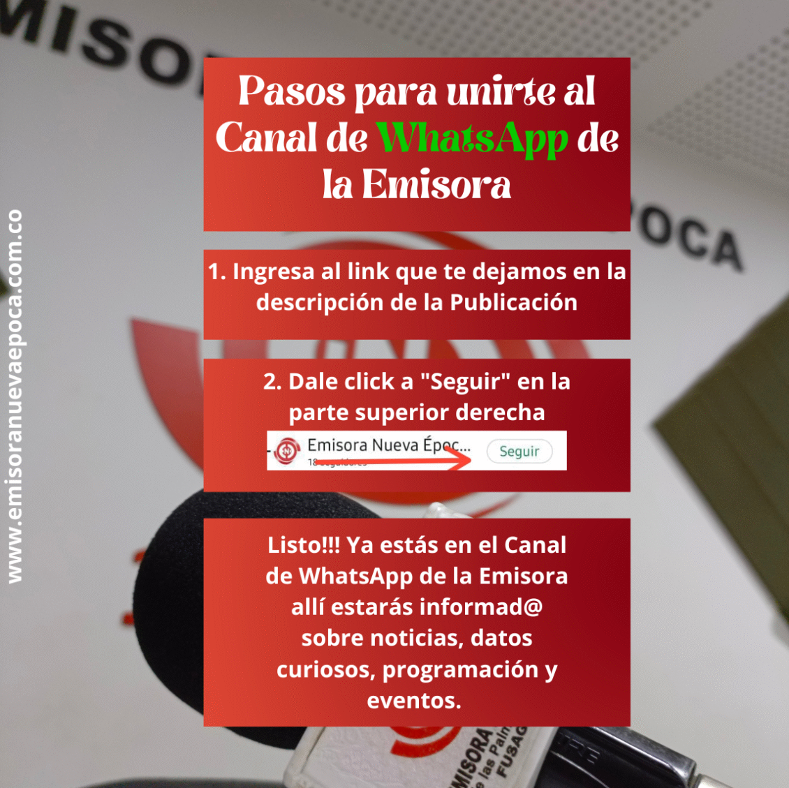 Listo!!! Ya est�s en el Canal de WhatsApp de la Emisora all� estar�s informad@ sobre noticias, datos curiosos, programaci�n y eventos.